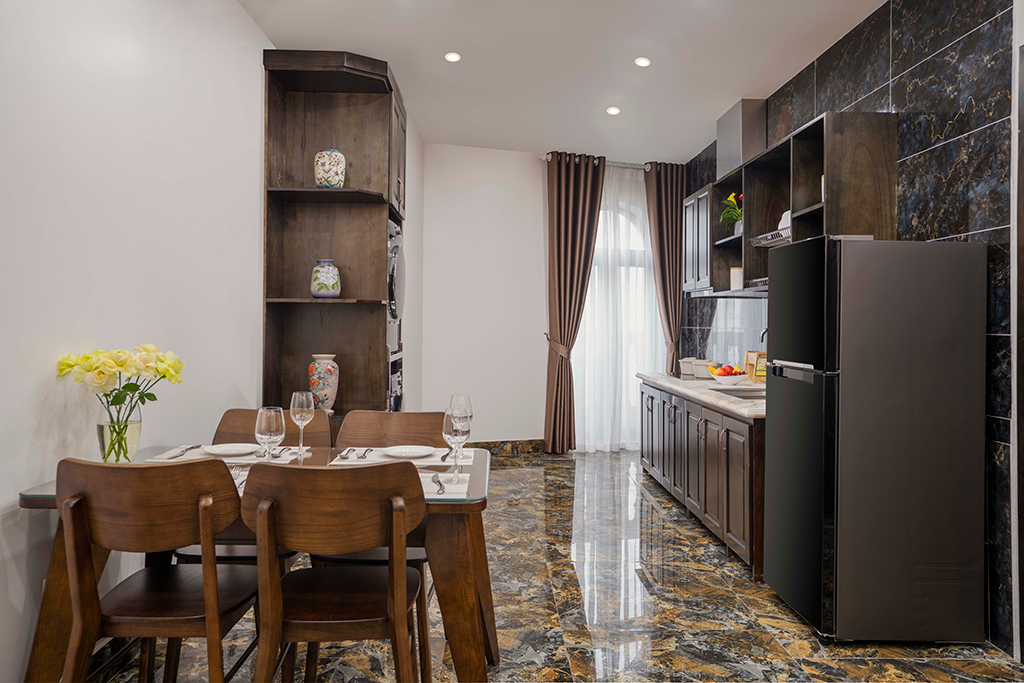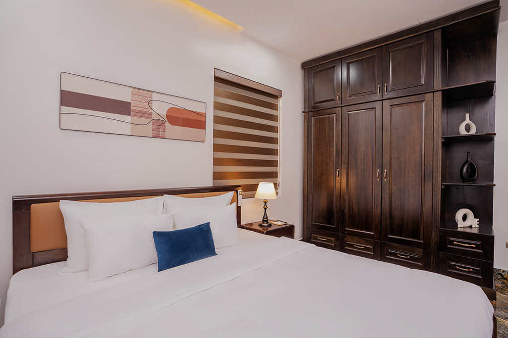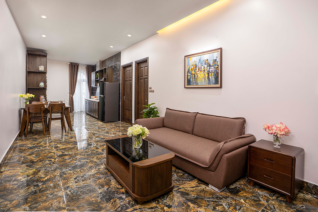 Trang bị nội thất: khu bếp và tủ lạnh, bàn ăn và ghế, sofa và bàn trà, IPTV, Wi-Fi tốc độ cao, tủ quần áo, két sắt an toàn, máy giặt – sấy, ấm đun siêu tốc