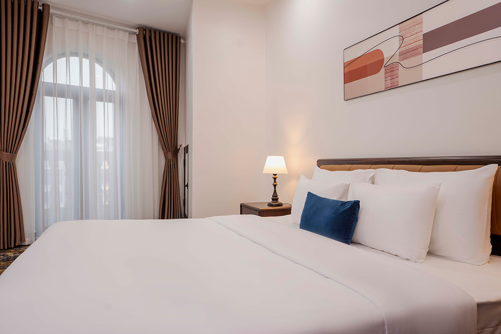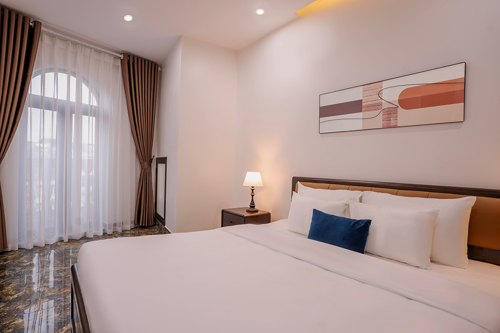 Phòng Suite 1 phòng ngủ được thiết kế tinh tế với giường King rộng rãi, mang lại không gian thoải mái và riêng tư, phù hợp cho cả kỳ nghỉ ngắn và dài ngày