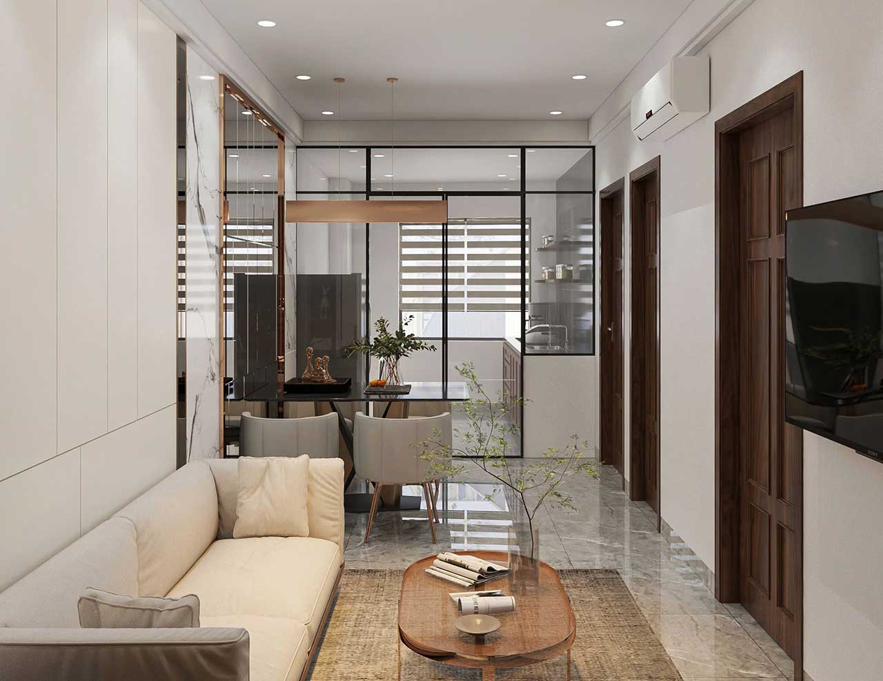 Căn hộ 2 phòng ngủ hướng thành phố được thiết kế sang trọng, tinh tế với không gian sống tiện nghi và hiện đại.